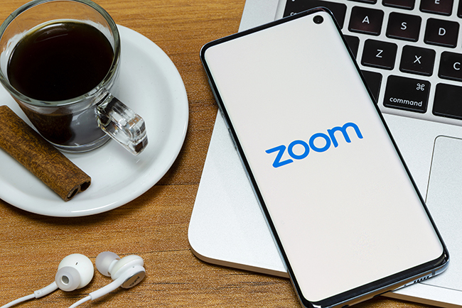 Sao Paulo, Brazil – April 2, 2020: logo Zoom Cloud Meetings -online meetings and group messaging into one easy-to-use application