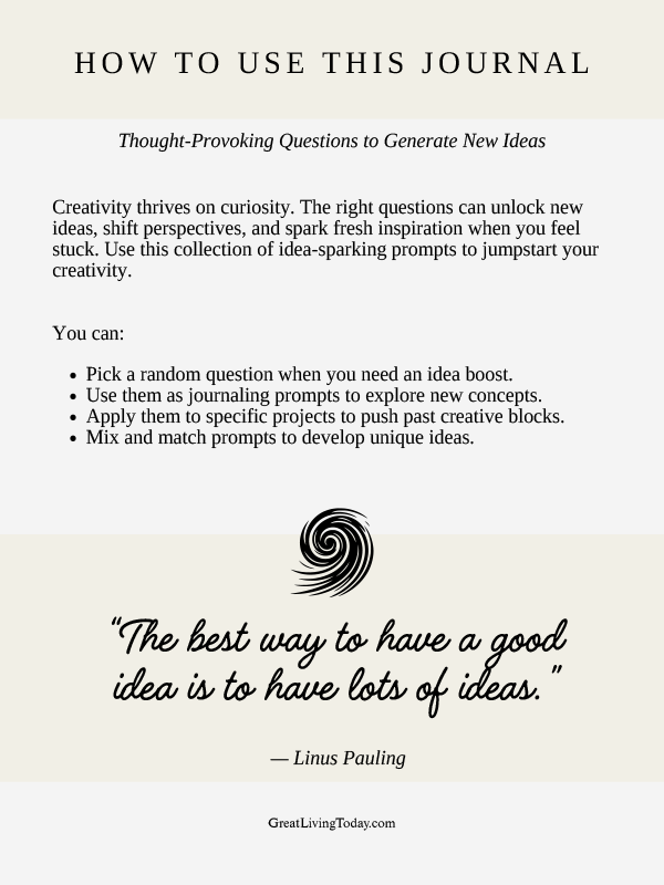Creativity thrives on curiosity. The right questions can unlock new ideas, shift perspectives, and spark fresh inspiration when you feel stuck. Use this collection of idea-sparking prompts to jumpstart your creativity