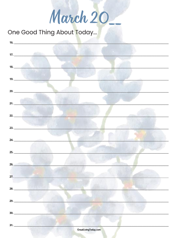 Beautiful Wildflower theme 2-Pages per month daily journal. The most simple journal you can use. Write just one short thought for each day. A perfect way to express gratitude and appreciation, a remembrance, a goal or a plan. 25 pages total. Printable.